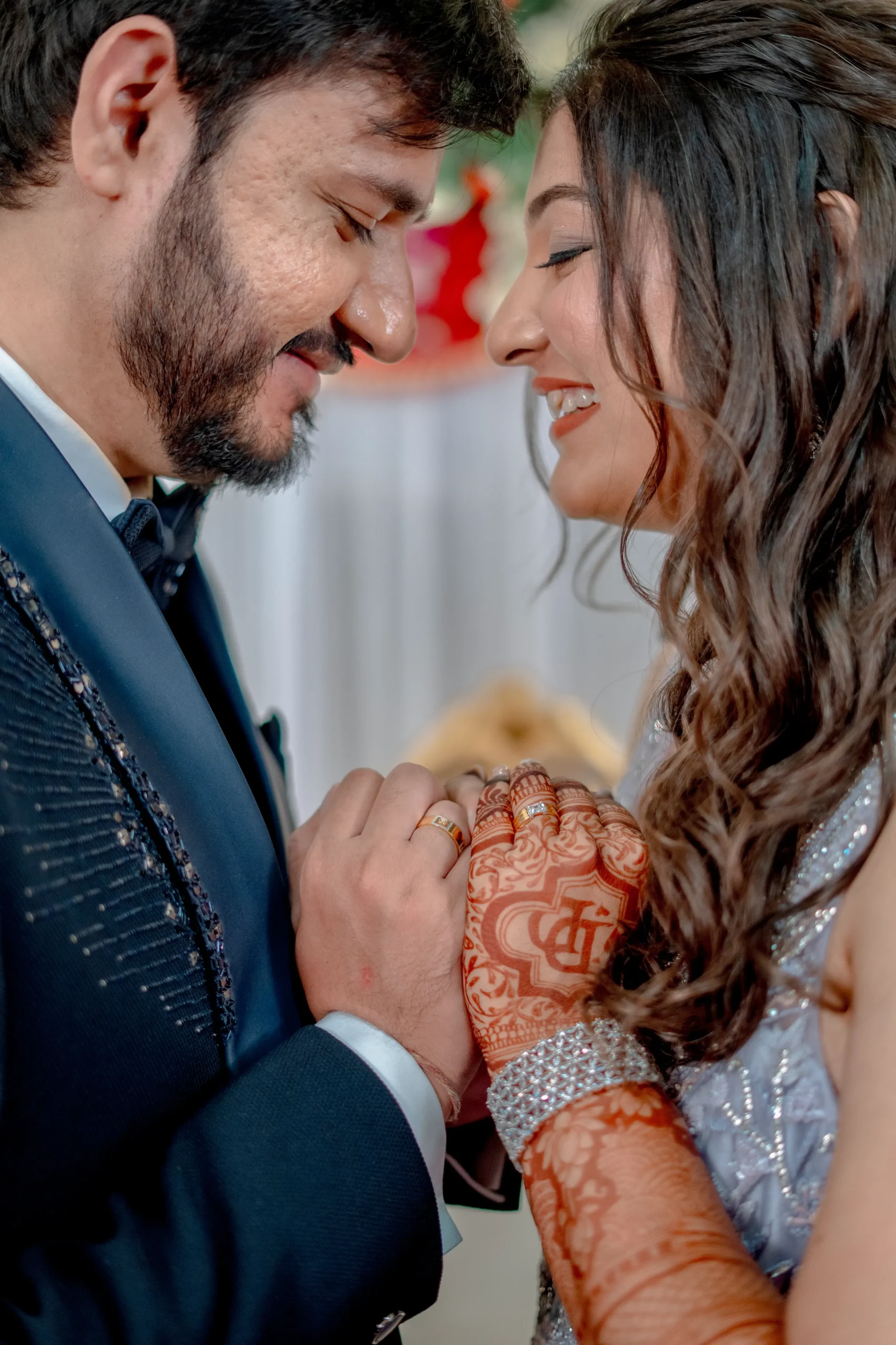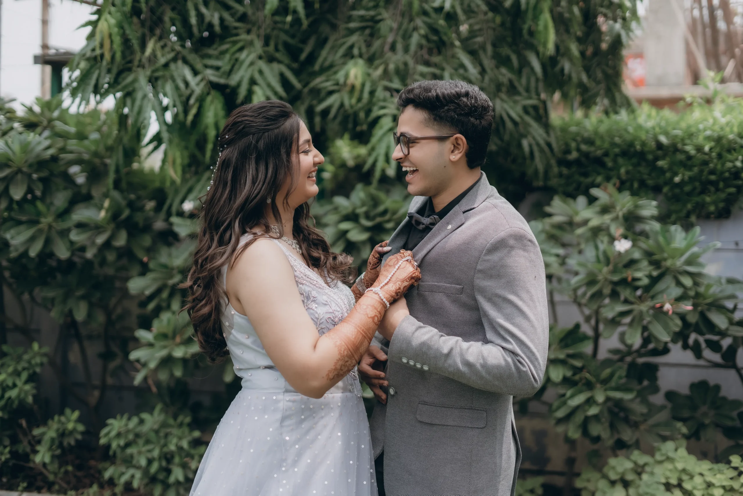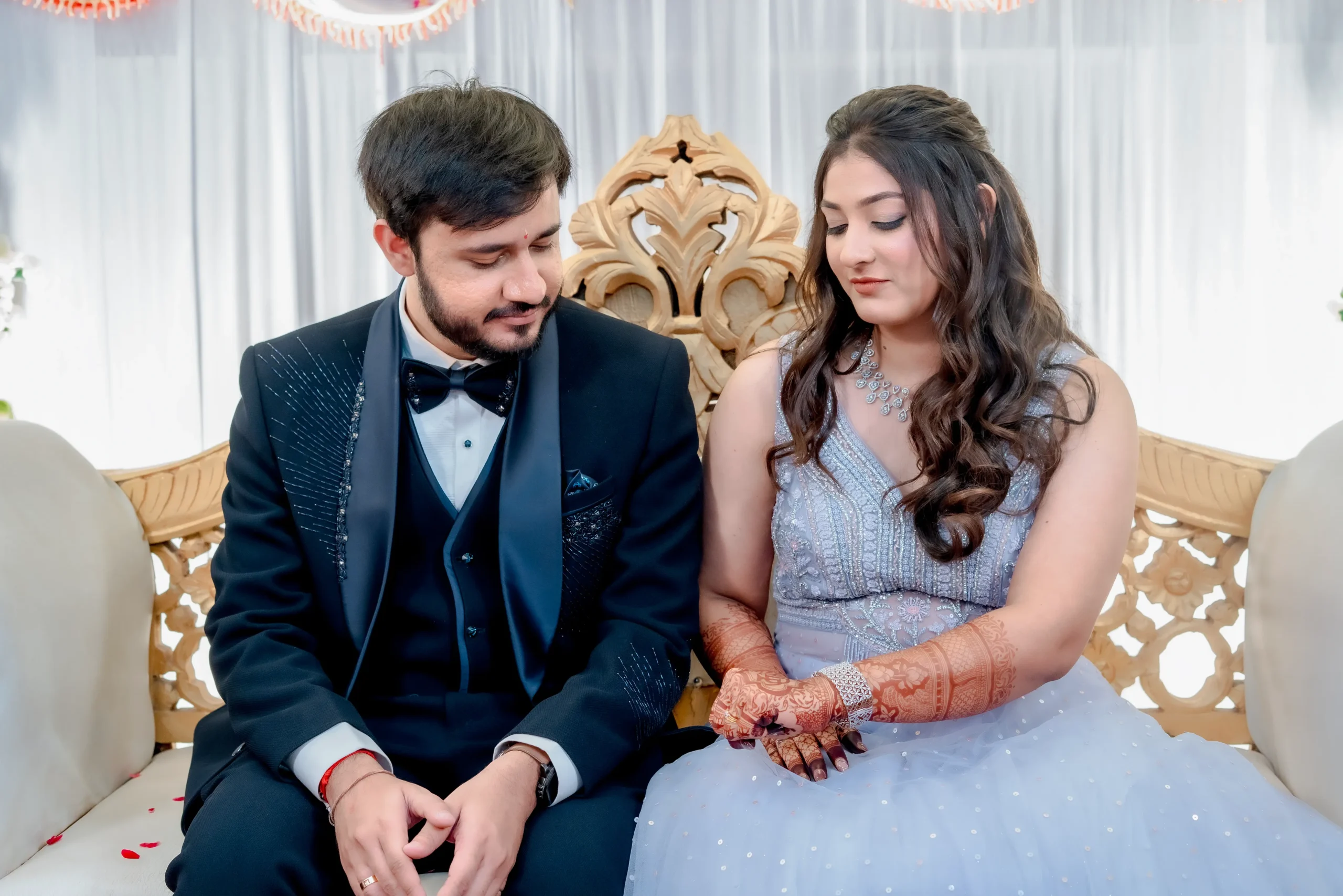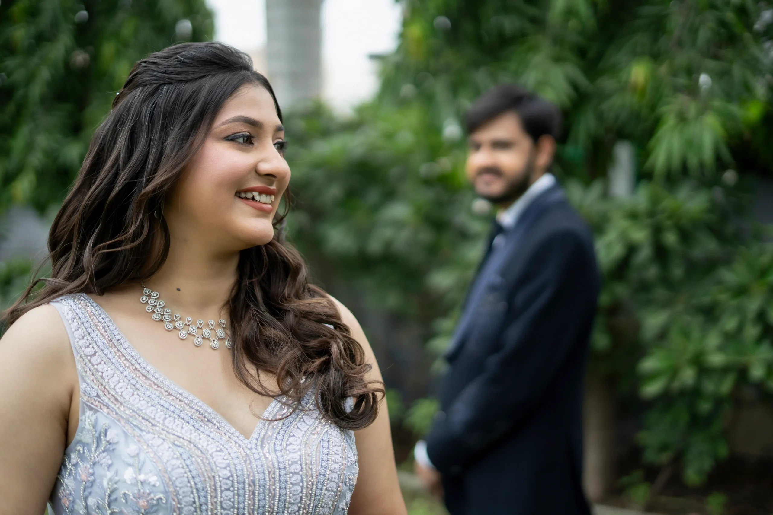 In the glittering heart of the city, where rooftop terraces catch the evening glow and fairy lights trace the skyline, Disha and Deep celebrated the beginning of forever. Their engagement ceremony was an intimate evening soirée — an elegant blend of modern sophistication and warm, joyful togetherness that felt entirely, beautifully them.
