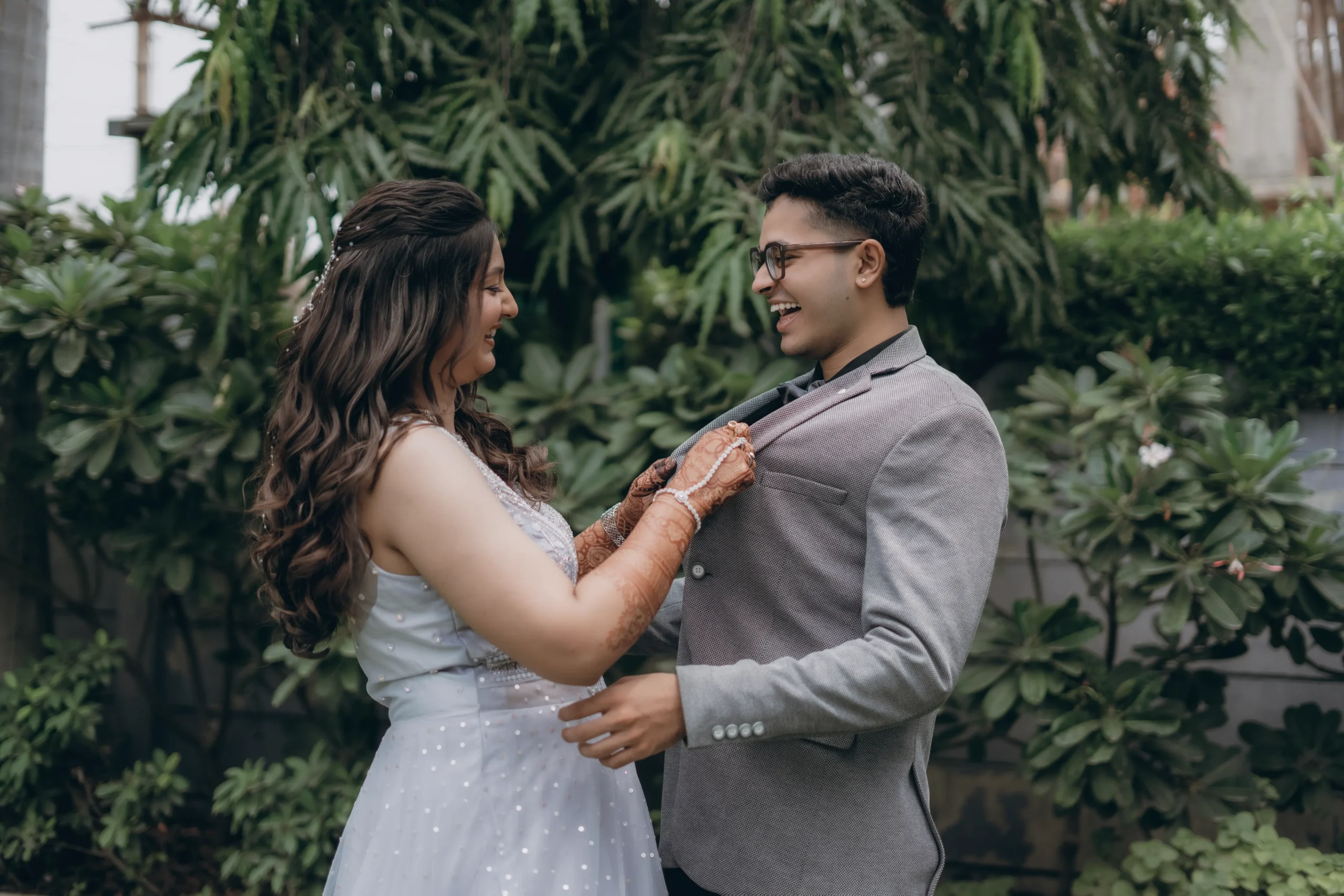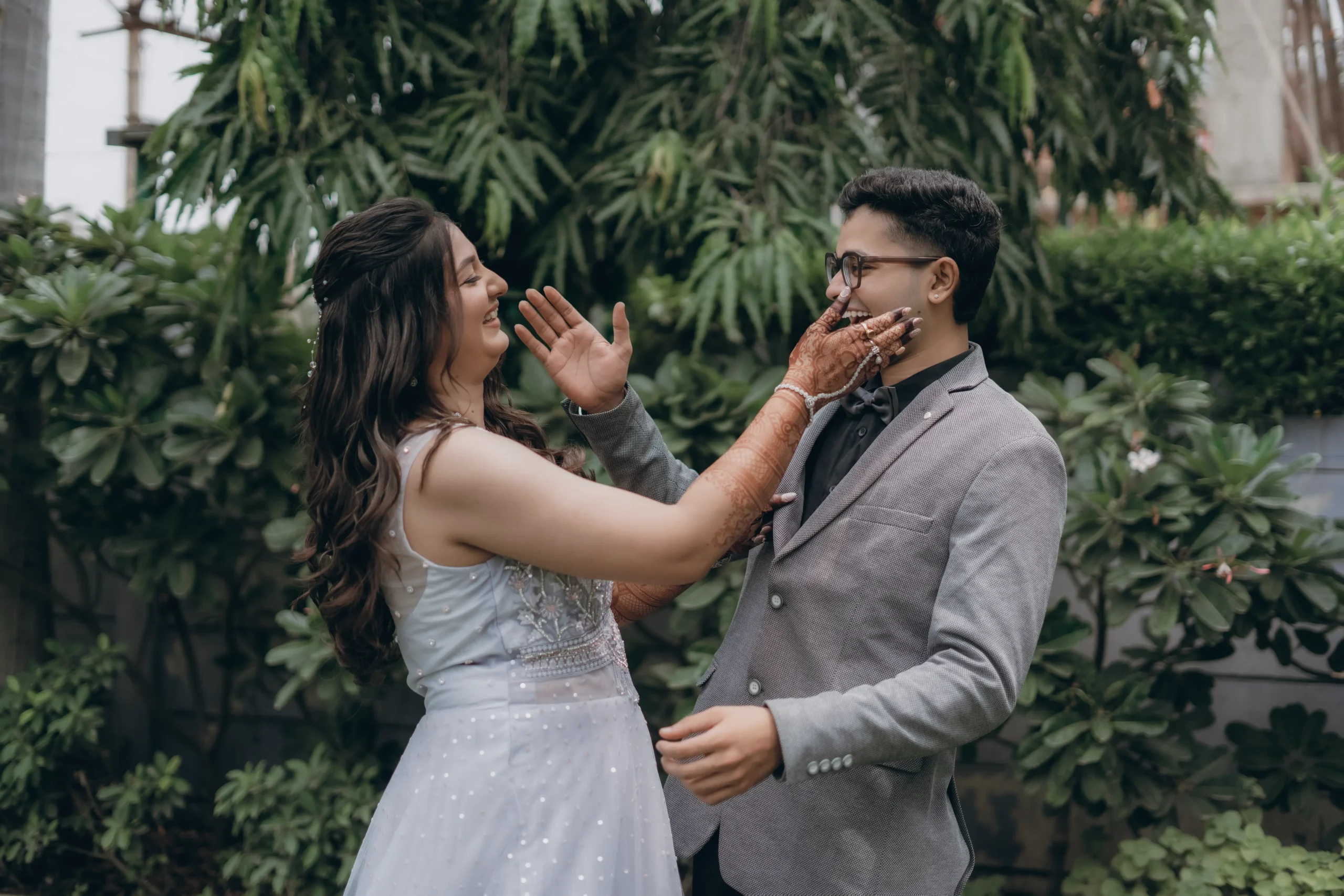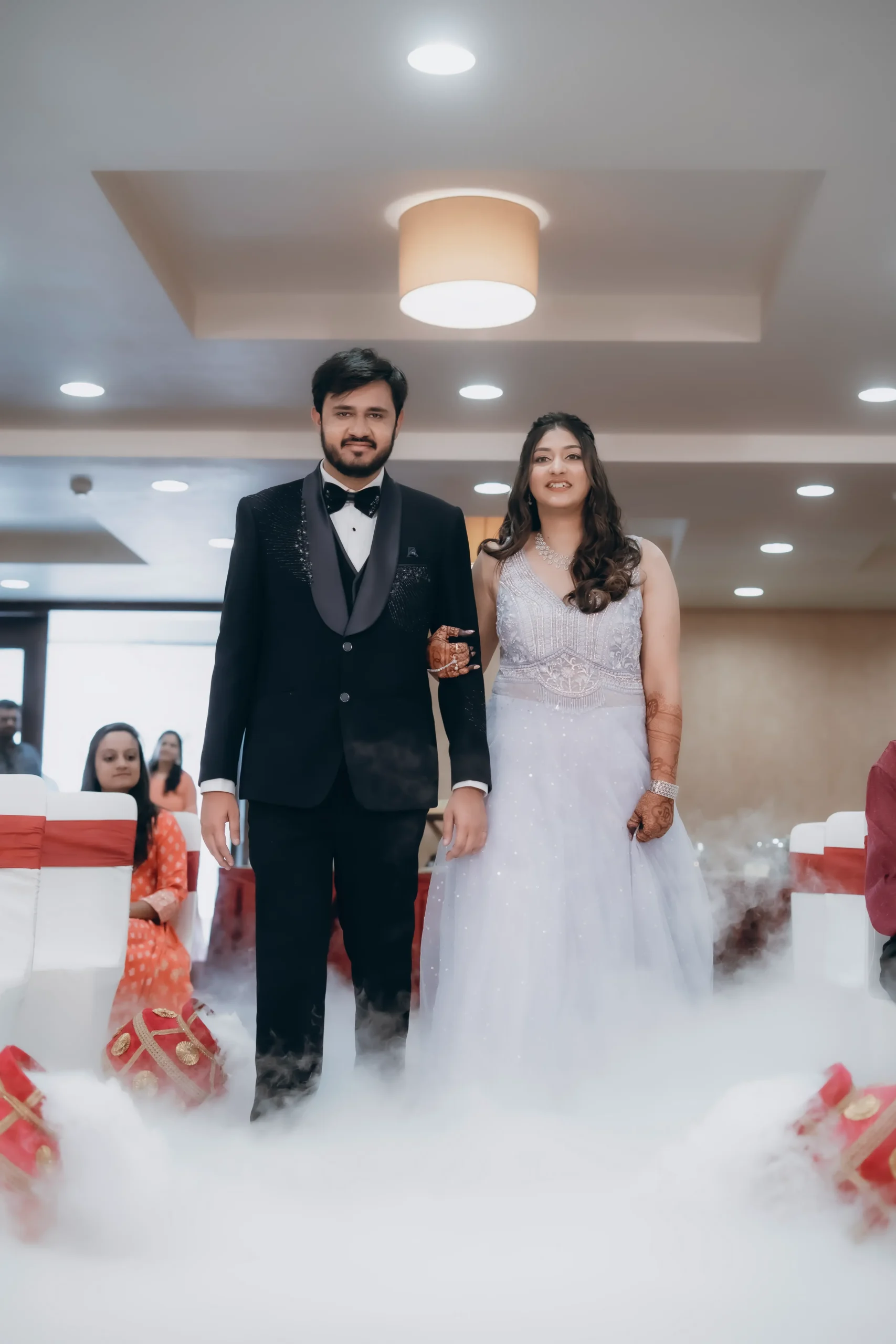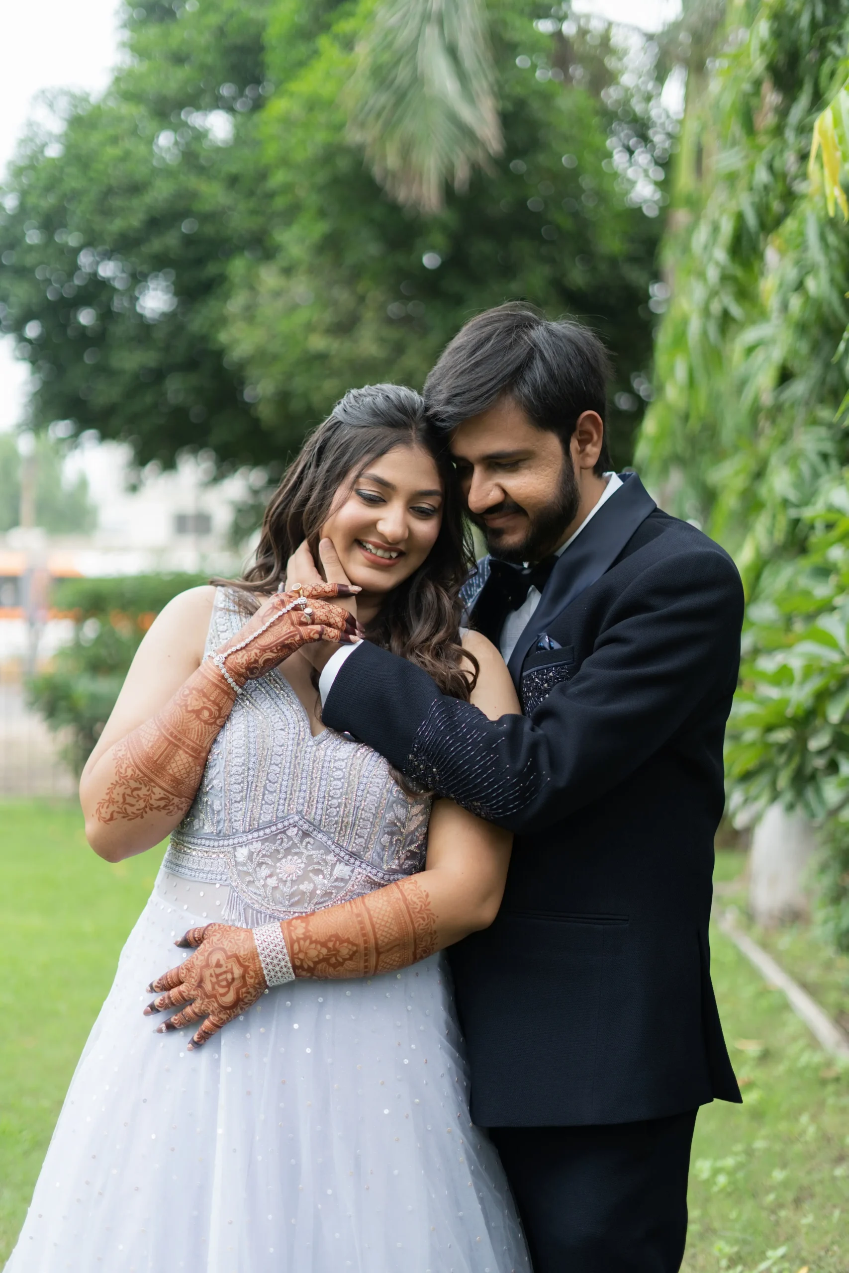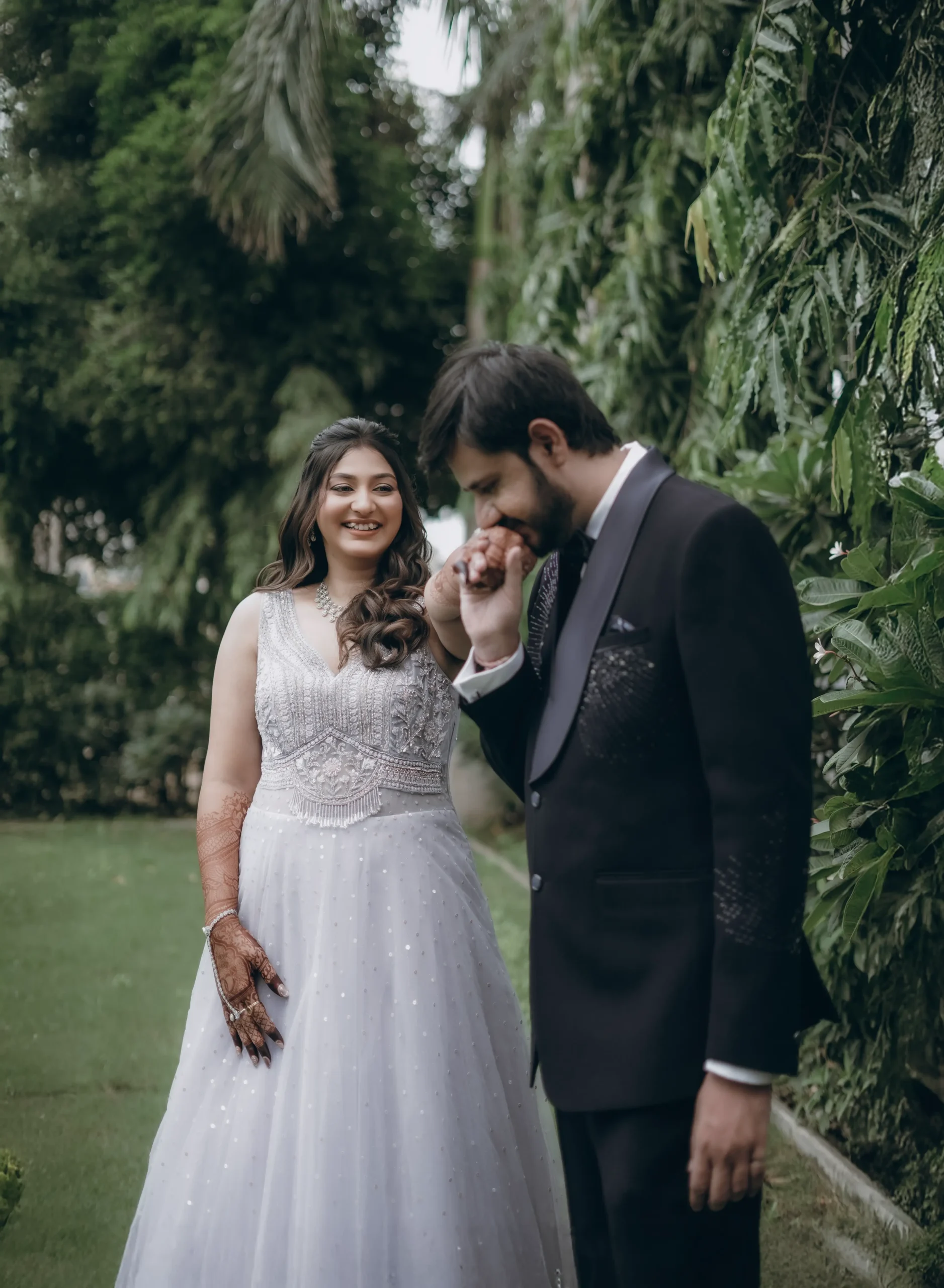 In the glittering heart of the city, where rooftop terraces catch the evening glow and fairy lights trace the skyline, Disha and Deep celebrated the beginning of forever. Their engagement ceremony was an intimate evening soirée — an elegant blend of modern sophistication and warm, joyful togetherness that felt entirely, beautifully them.
