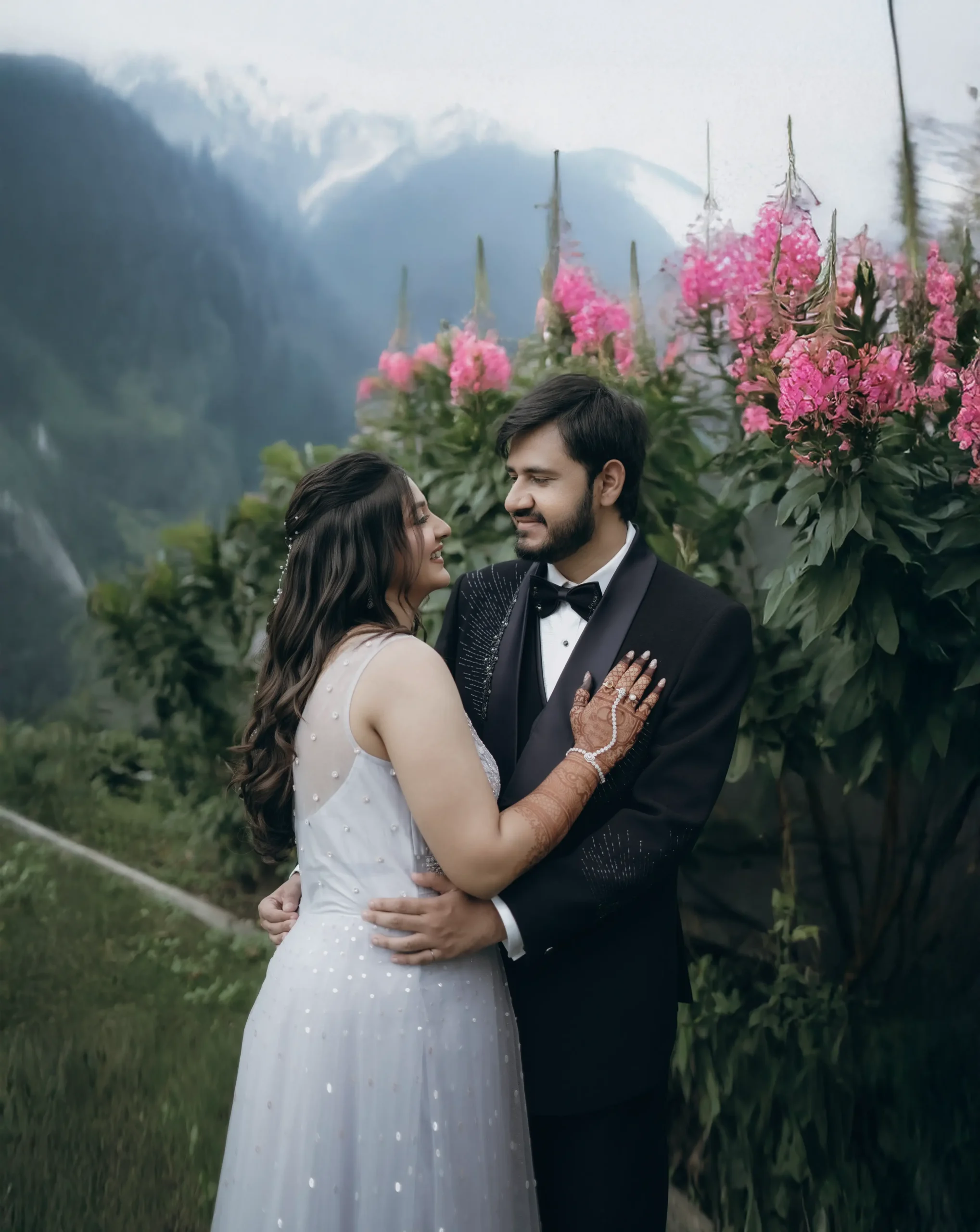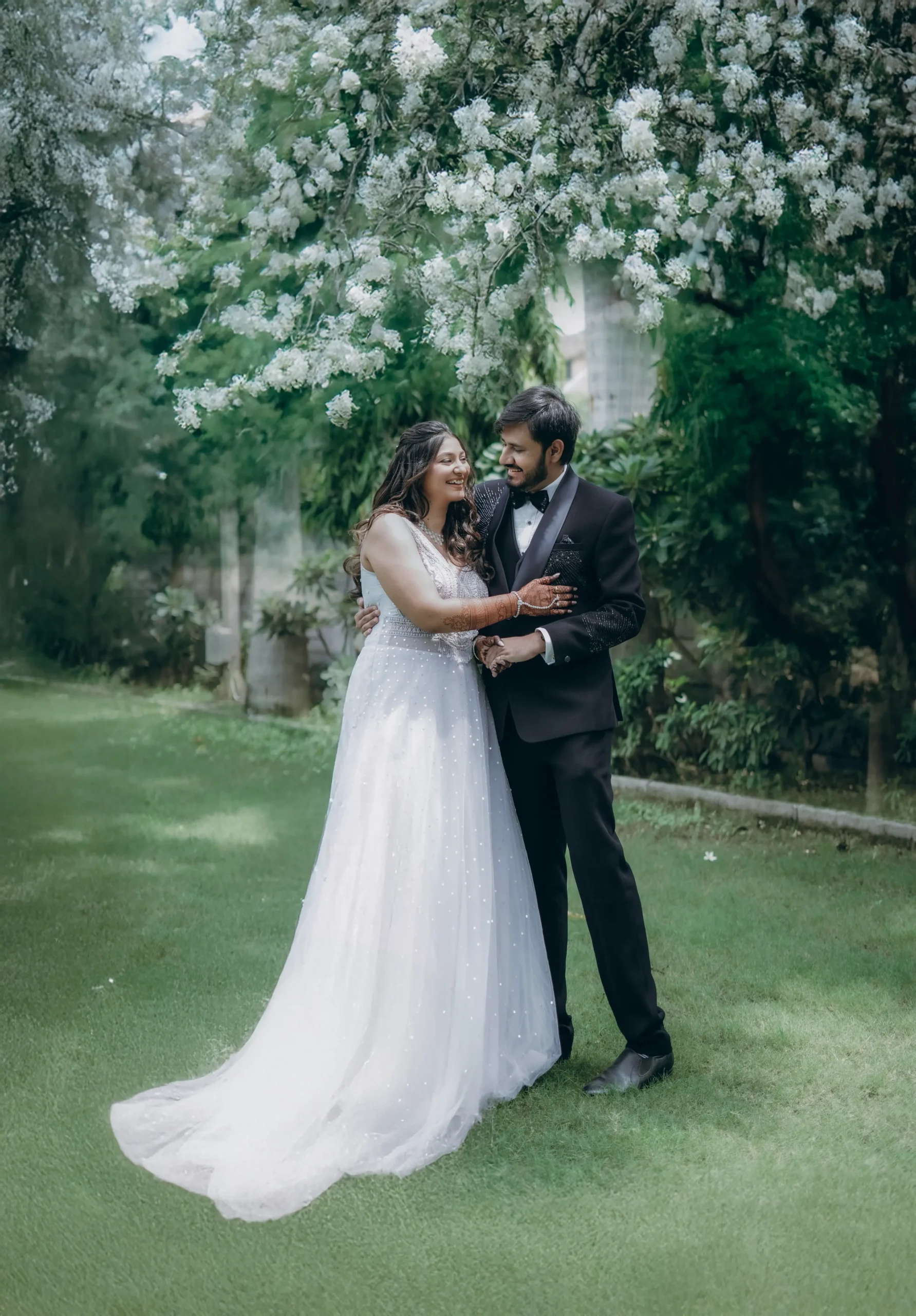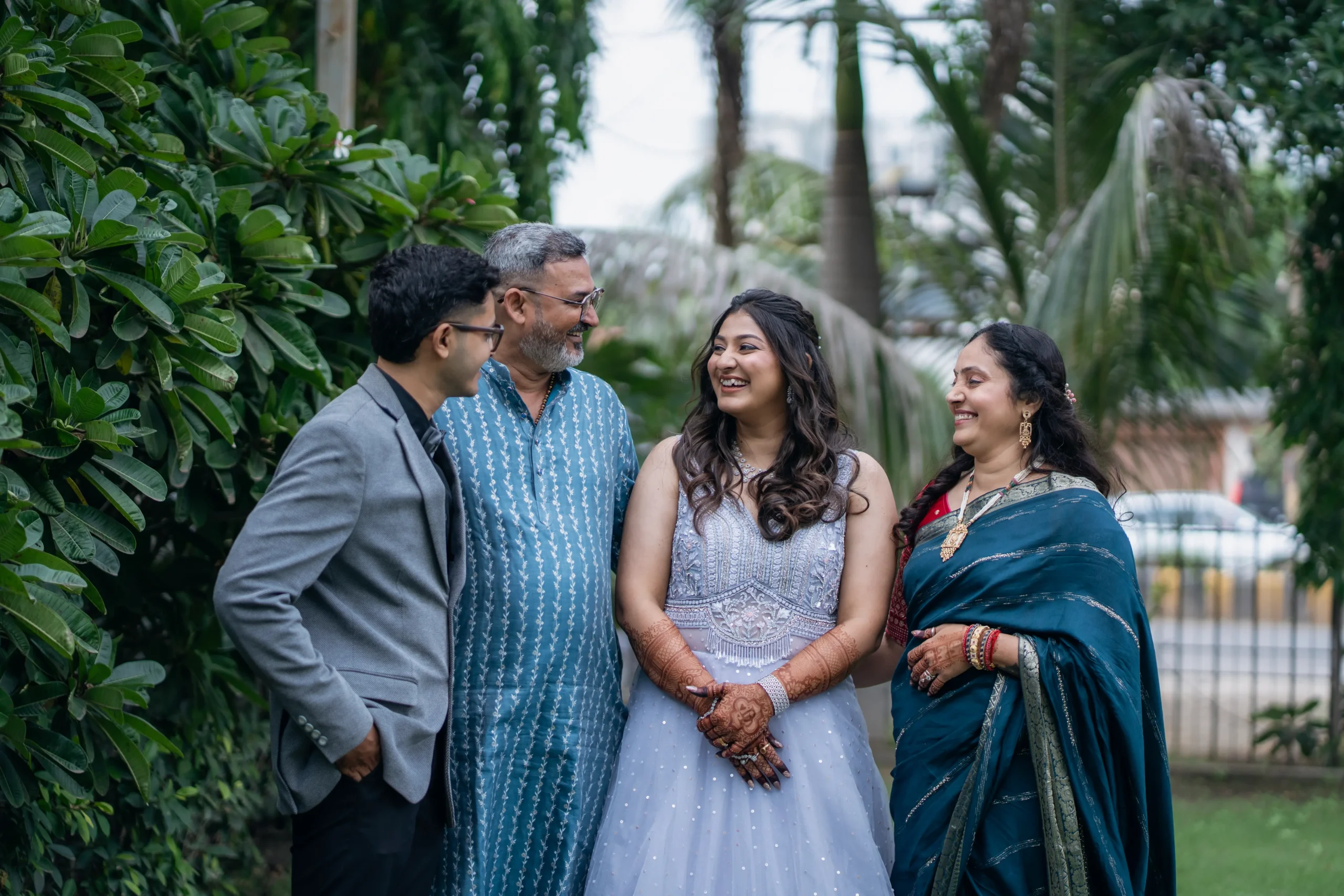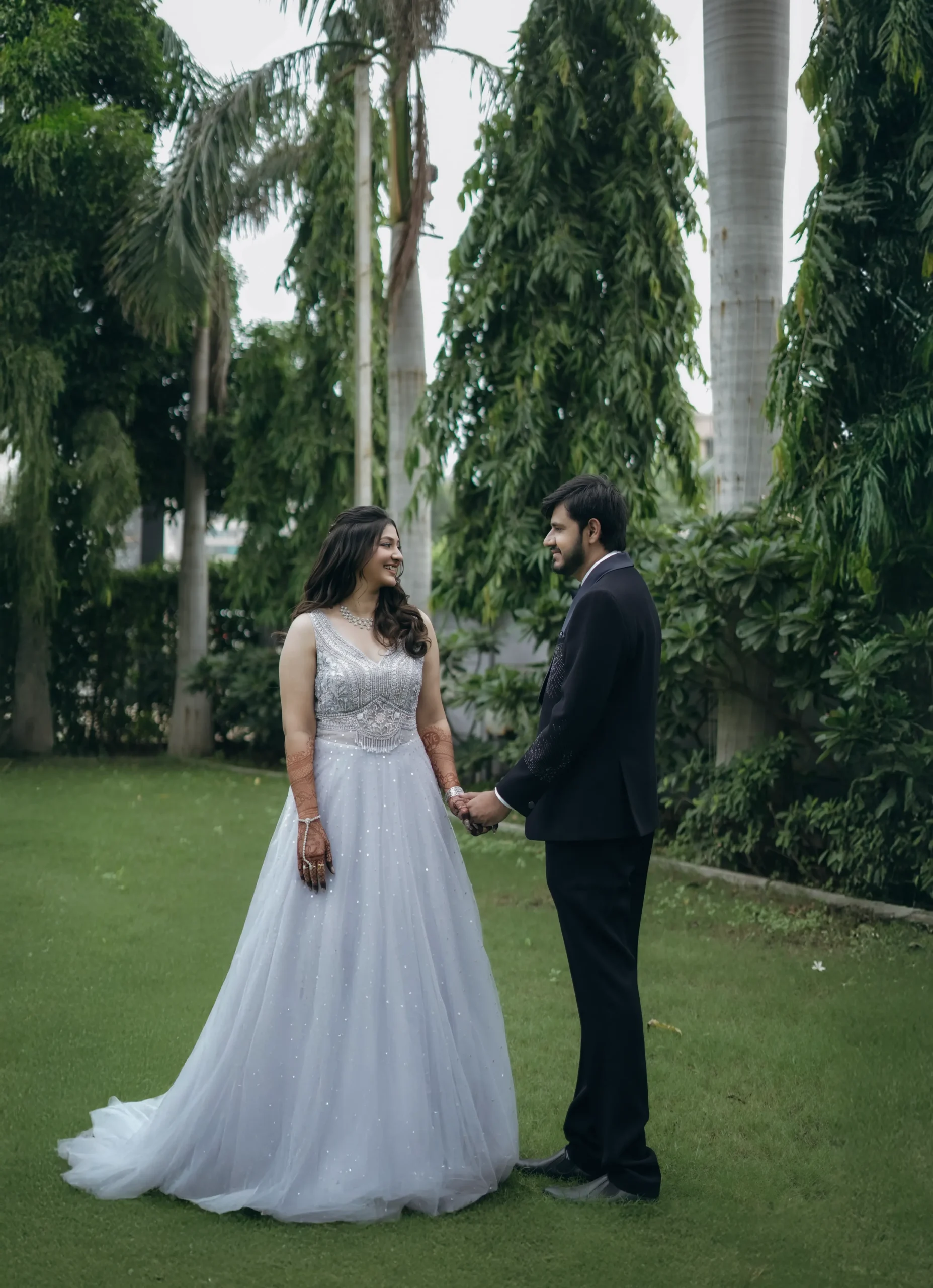 In the glittering heart of the city, where rooftop terraces catch the evening glow and fairy lights trace the skyline, Disha and Deep celebrated the beginning of forever. Their engagement ceremony was an intimate evening soirée — an elegant blend of modern sophistication and warm, joyful togetherness that felt entirely, beautifully them.
