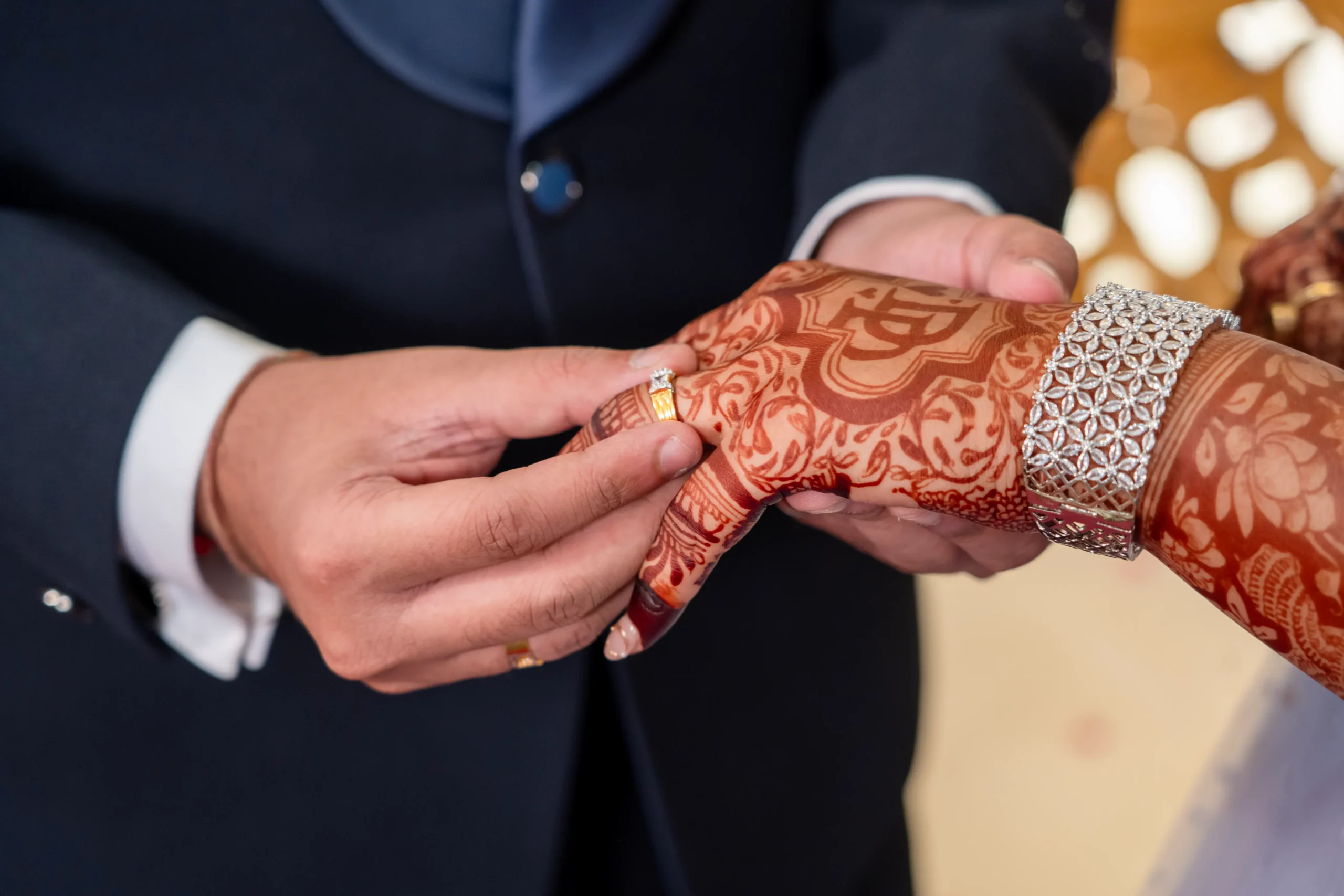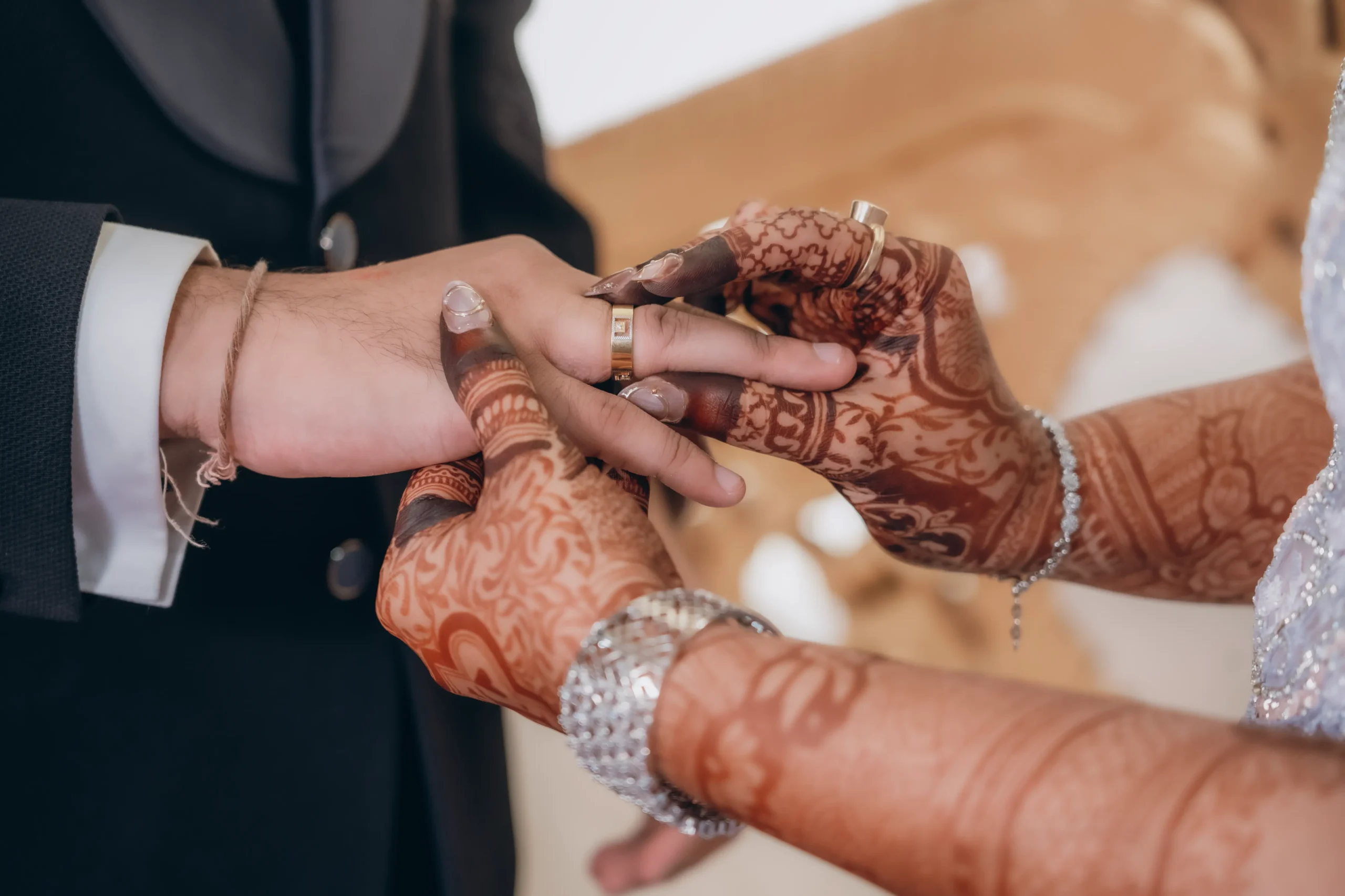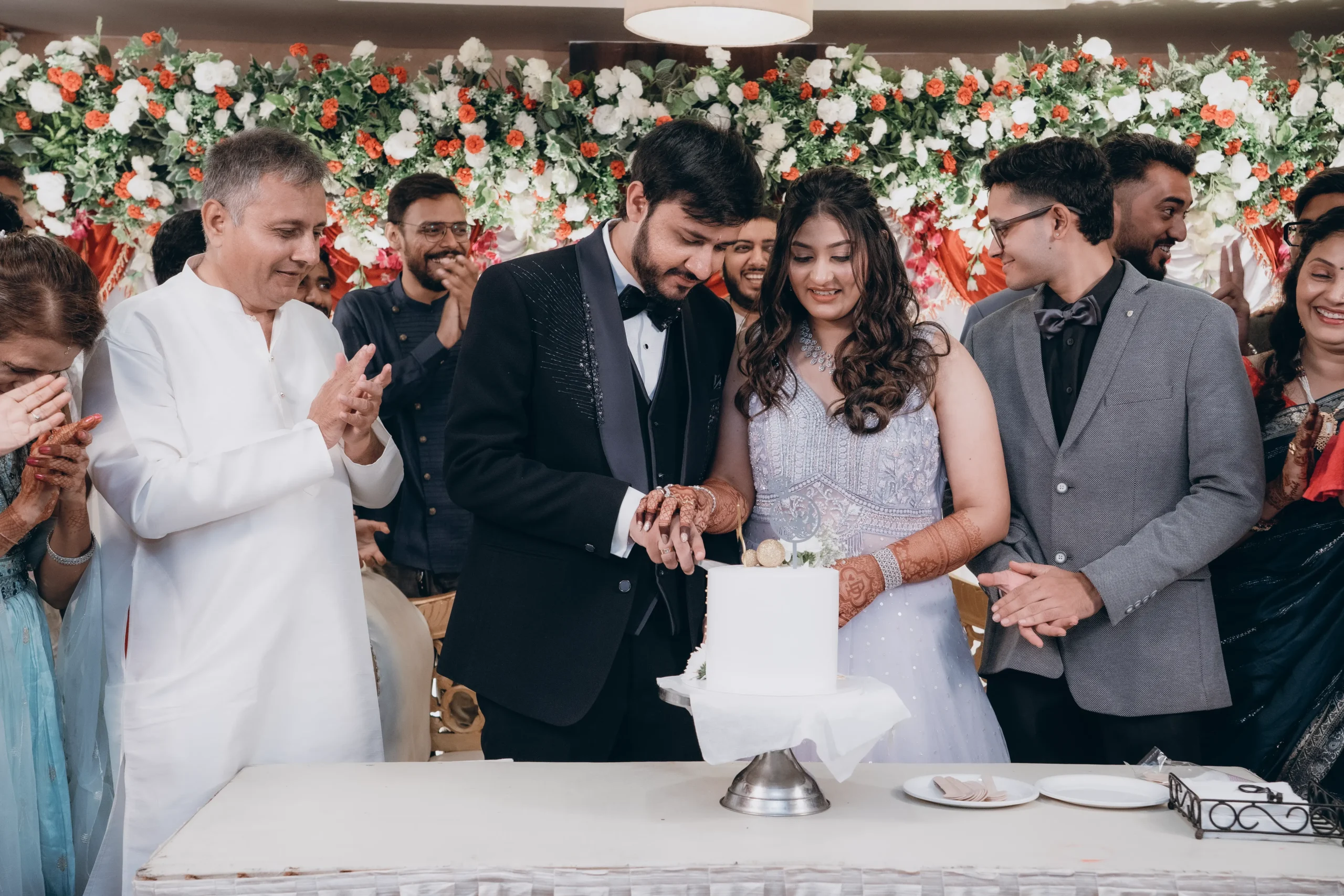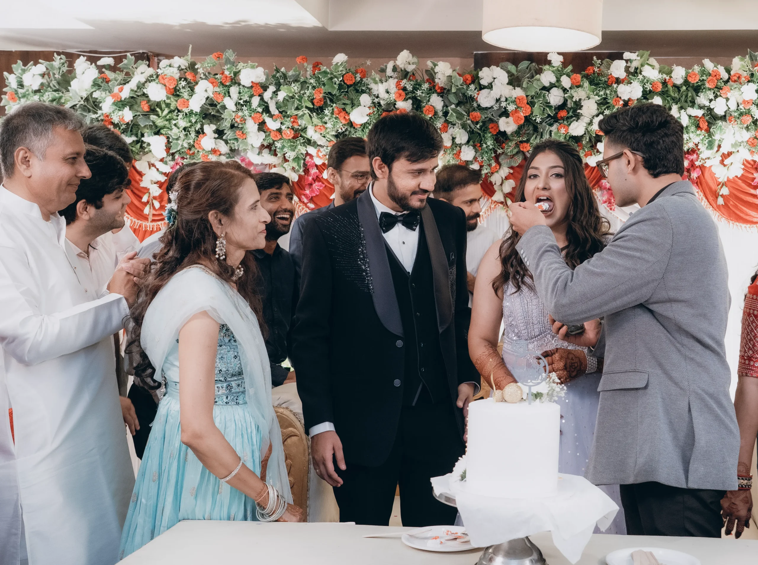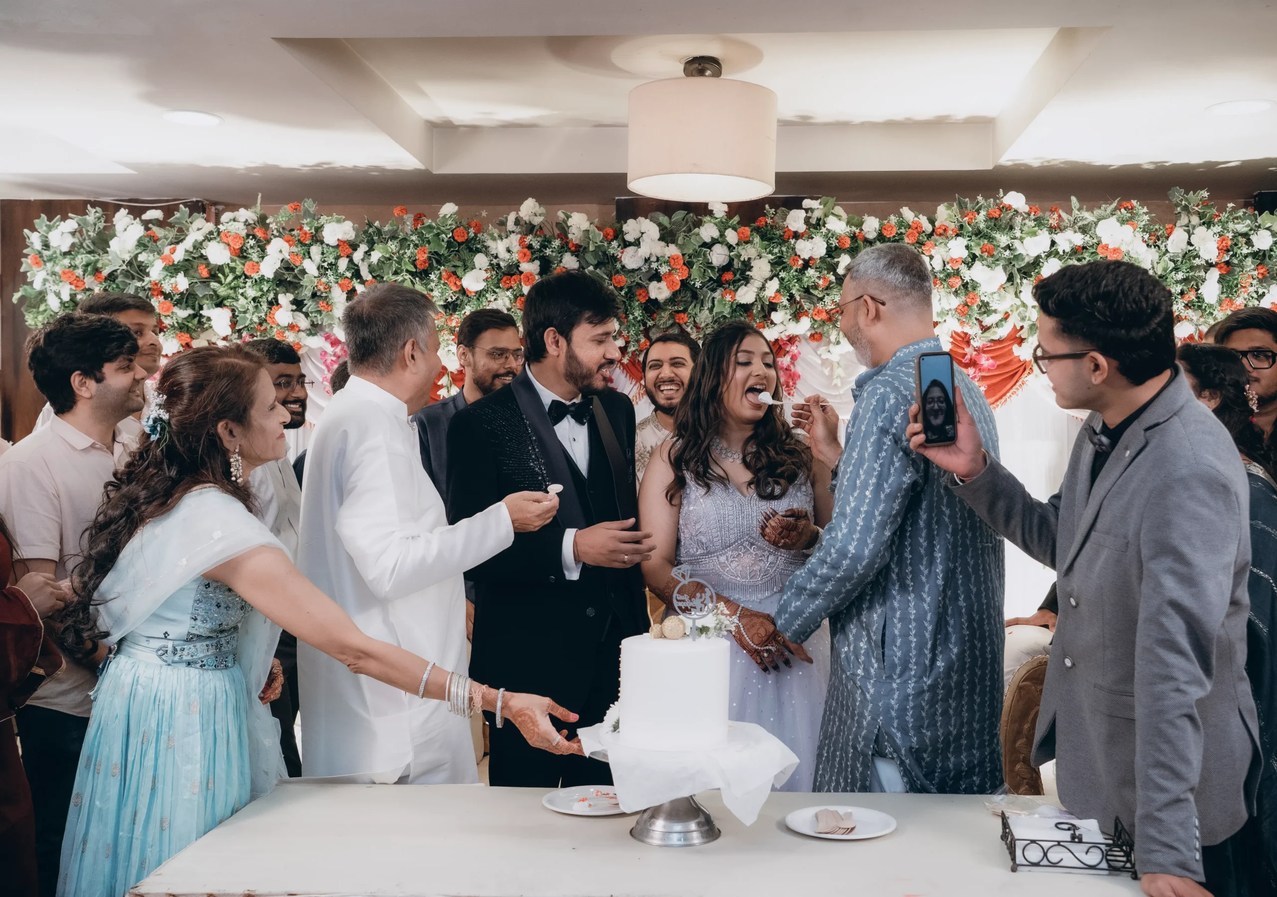 Surrounded by close family and cherished friends, the couple exchanged rings as the city hummed below them. Disha, radiant in blush and gold, and Deep, poised and smiling, shared a moment of quiet tenderness amid the celebration — a pause in the sparkle, just for them.