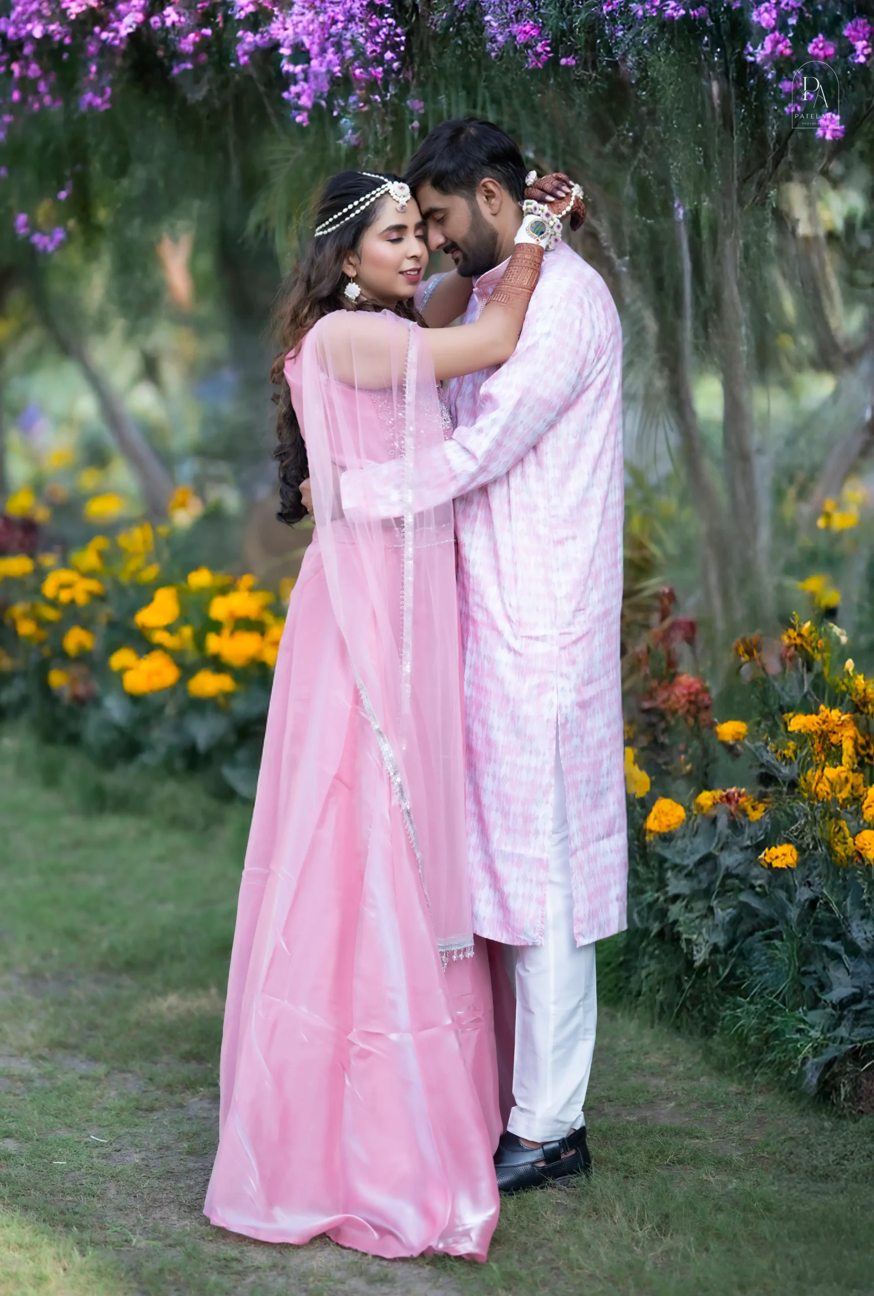 Amid lush gardens blooming with color, where jasmine fills the air and marigolds line every path, Riya and Devik’s pre-wedding story begins. Their connection is as natural and radiant as the world that surrounds them — effortless, gentle, and full of life.